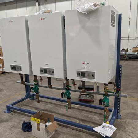 The new boilers and equipment are high-efficient and will be qualifying for Fortis rebates. All equipment has been purchased through Murray Mechanical Sales and owner, Miles Murray, will be present on site for the start-up. Miles has pre-assembled the boilers in Vancouver to ensure all components are ready for start-up.
